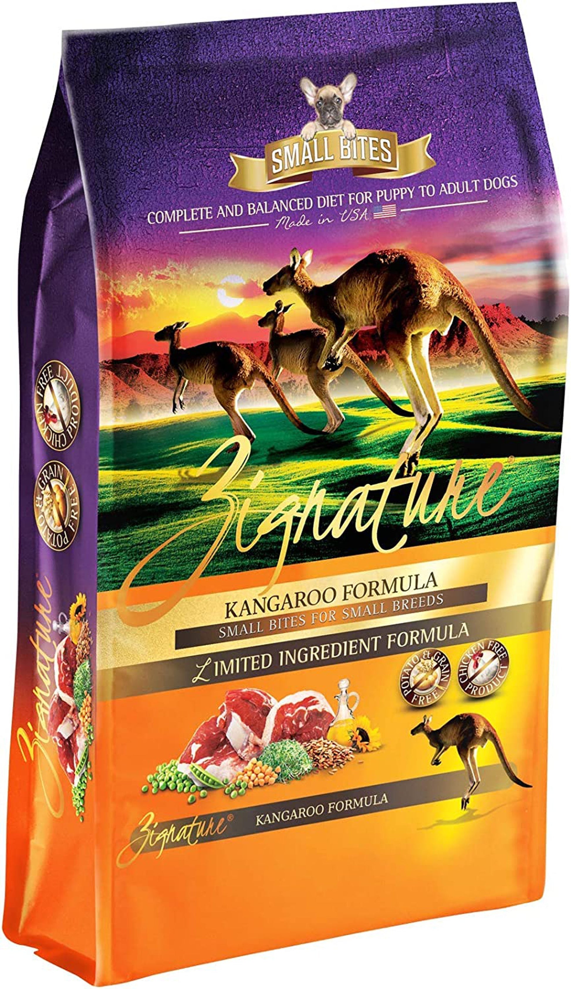 For our smaller pups, try Zignature Small Bites! Zignature Small Bites follows our same limited-ingredient, meat-first philosophyjust in smaller sized bites. Our Kangaroo Formula Small Bites are packed with lean Kangaroo protein which is rich in nutrients and has twice the amount of Vitamin B12 than any other meat protein. Then, we top that off with other healthy and wholesome ingredients to provide your pup with a tasty and well-balanced diet. br/>Sold In Qty of: 1