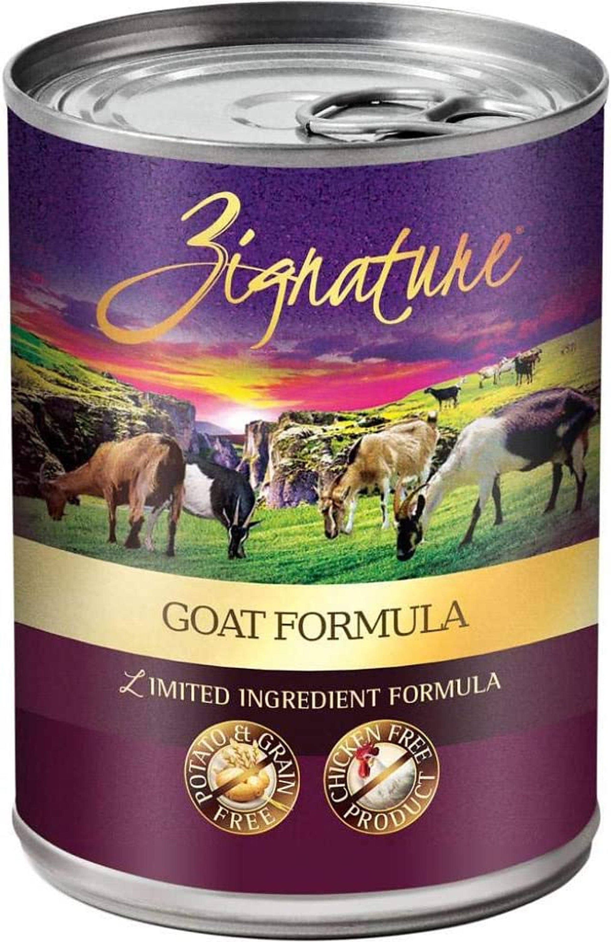 Zignature Canned Goat Formula is made with low in fat, high-quality Goat as the number one ingredient. It contains 78% moisture to keep your pup hydrated and is topped off with nutritious and delicious ingredients such as peas and chickpeas to round out a healthy and well-balanced diet. br/>Sold In Case of 12